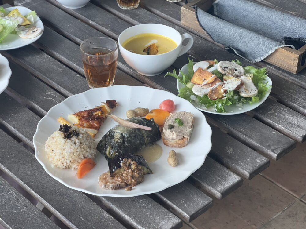 のどかな景色と野菜たっぷりの食事で心が満たされるランチタイムになります。