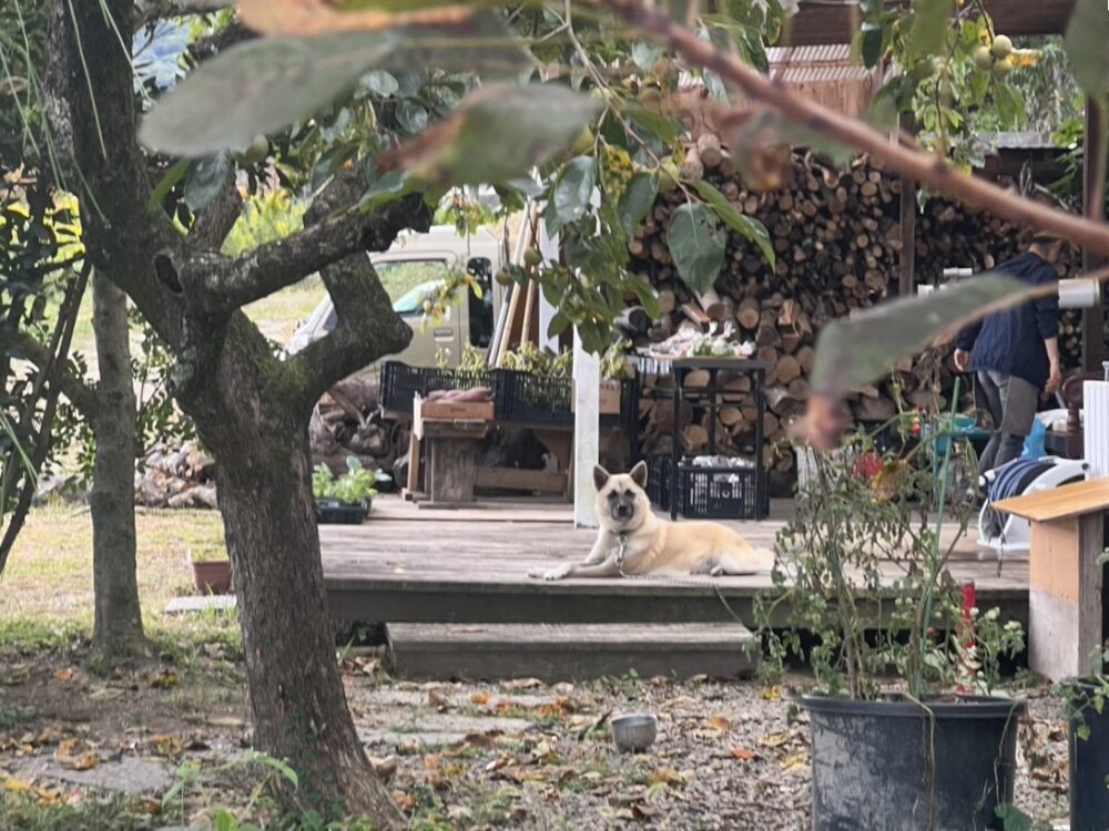 ちなみにお店の外にはお店の方の愛犬「うめ」ちゃんがいて、その奥では地元産の野菜なども販売されています。
