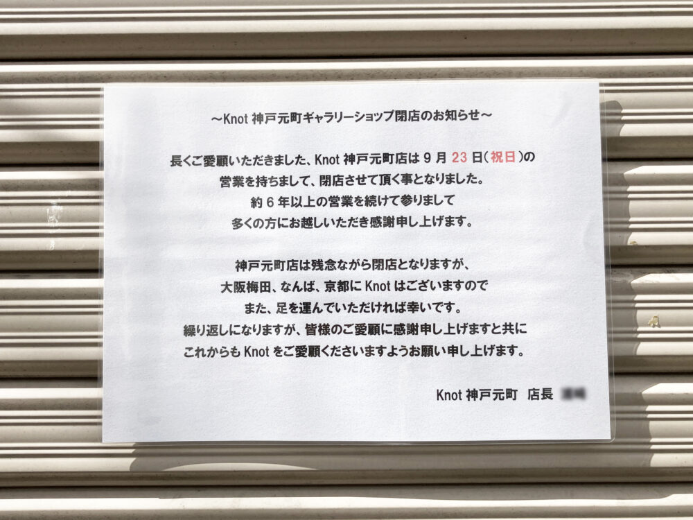 理由については書かれていませんが、約6年神戸で営業し足を運んでくれたお客さんへの感謝のメッセージが添えられています。