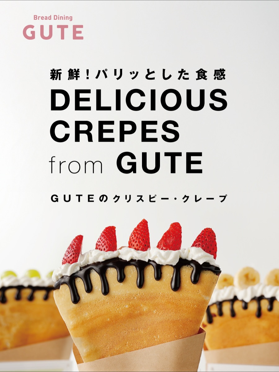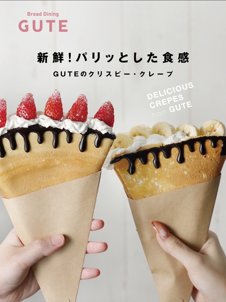 今回名谷グーテで限定販売されているのは、新食感を楽しめる『クリスピークレープ』。通常のクレープの「モチモチ」とした感じと違い、「パリッ」とした新鮮な食感を楽しめるそうで、SNSでも話題沸騰中の商品です。