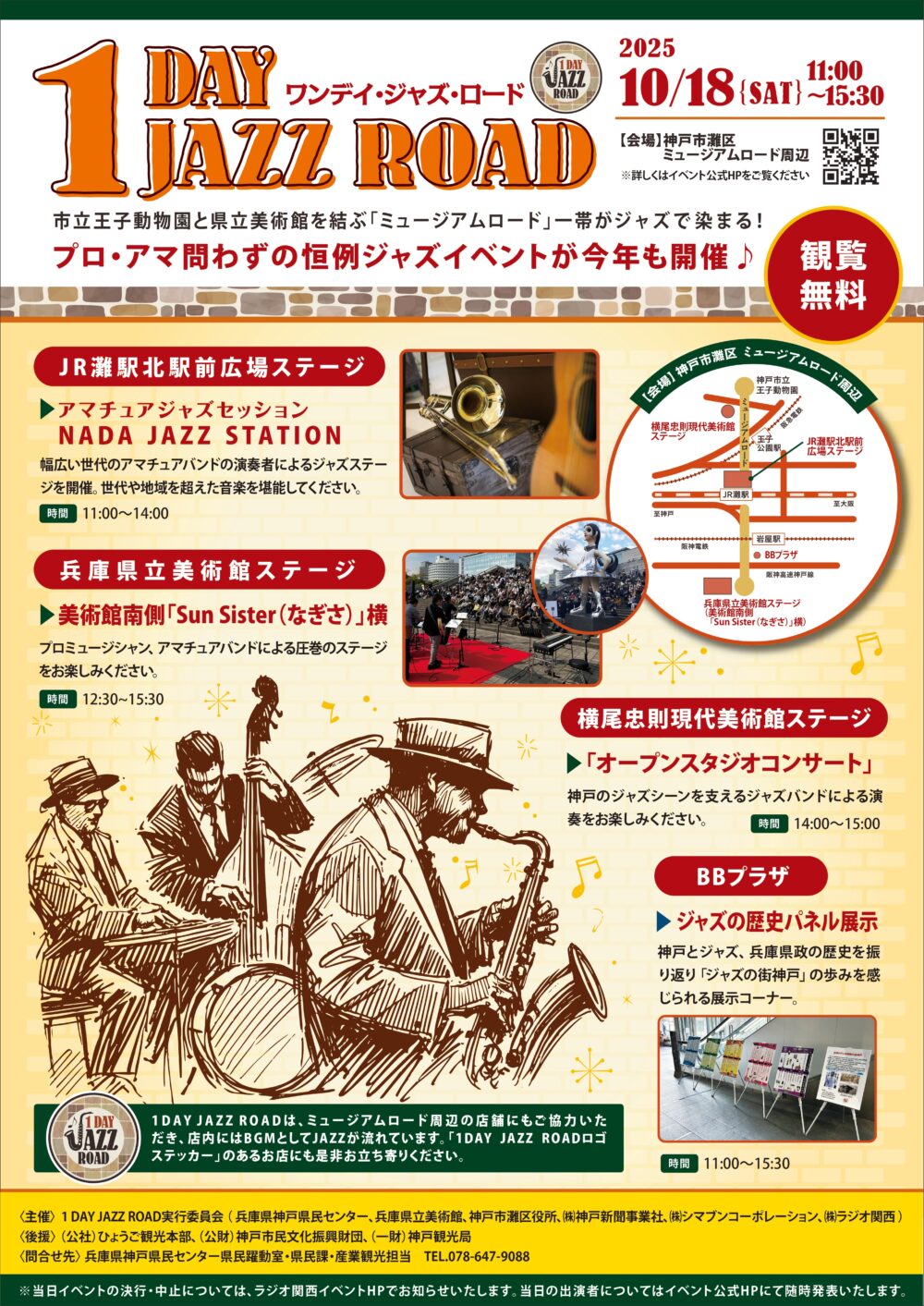 灘区「ミュージアムロード」周辺で、ジャズステージなどを行うイベントが今年も開催されます。入場無料です。