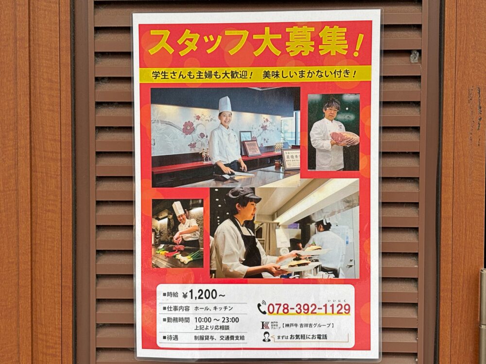 サンキタ通りに、神戸牛専門店『吉祥吉』の新しい店舗ができるみたいです。
