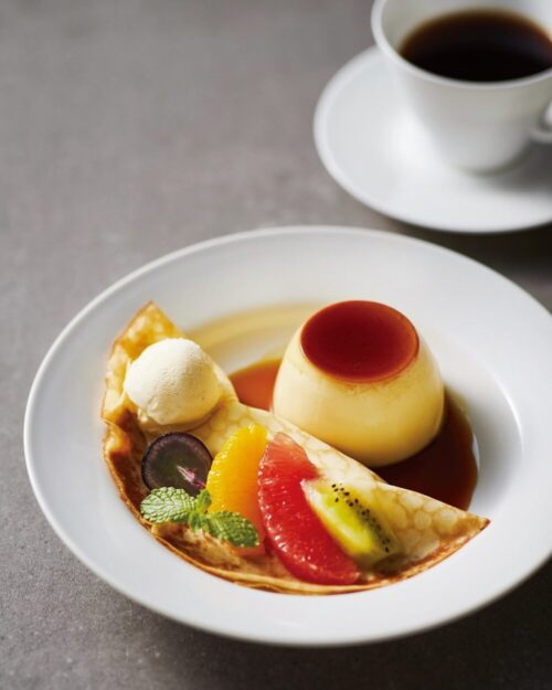 「カフェ モロゾフ」クレープのプリンアラモードとお飲物(1,540円)