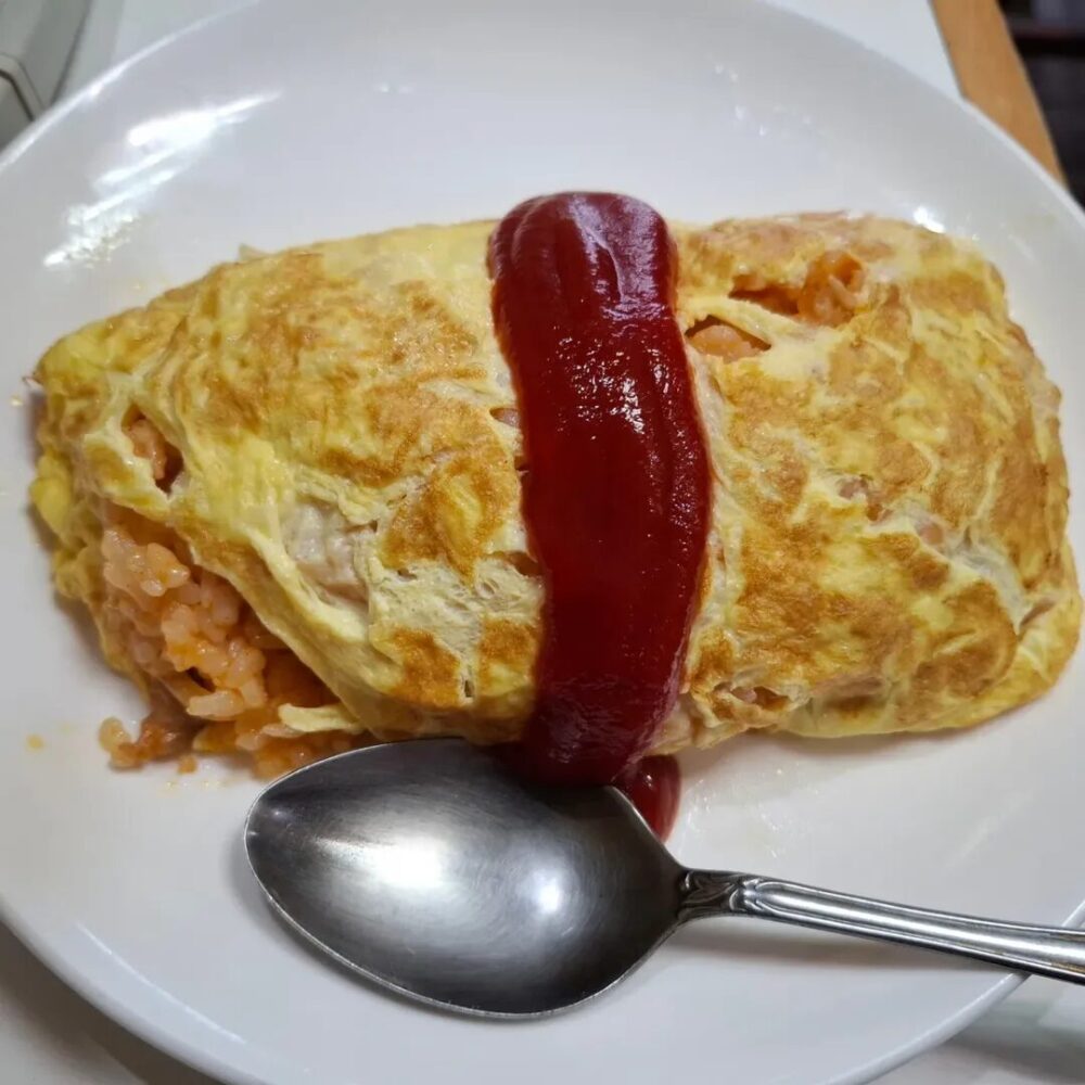 薄焼きのふわふわ卵に包まれた「オムライス(550円)」は、昔ながらの味わい。