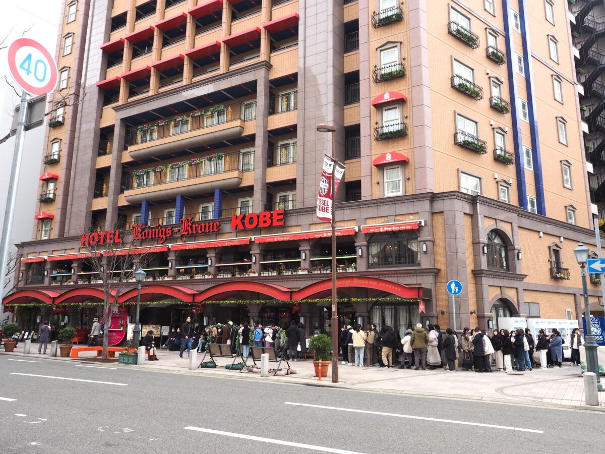 そんな日に訪れたのは「ホテルケーニヒスクローネ神戸くまポチ邸」。相変わらずの人気っぷりで平日にも関わらずオープン前から長蛇の列をなしています。