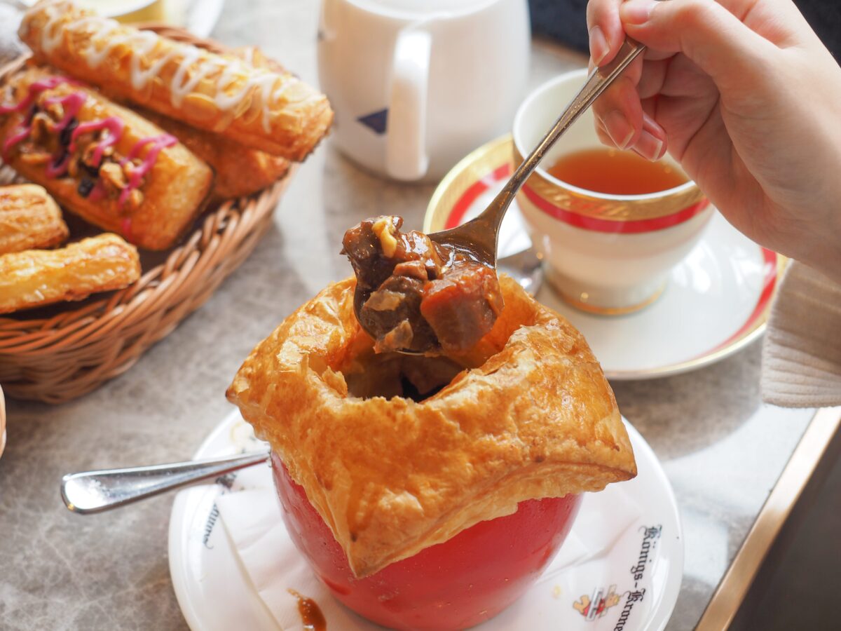 「卵とお餅のビーフシチューセット(2,310円)」は平日・数量限定でパイ包みにしてもらえるんです。オープン前列に並んでいると引換券を希望者のみに配ってくれるシステム。