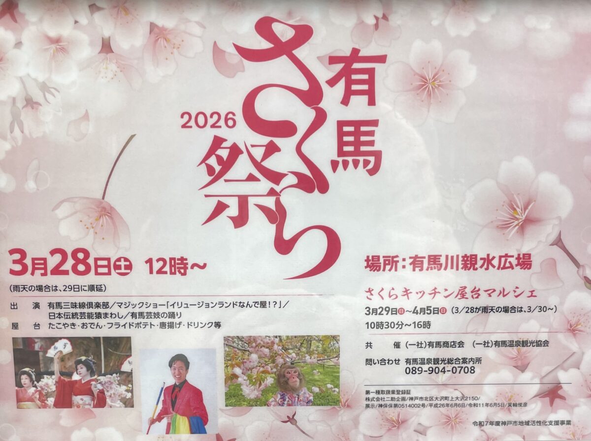 【有馬さくら祭】2026年3月28日(土)12:00~(※雨天の場合は29日(日)に順延)