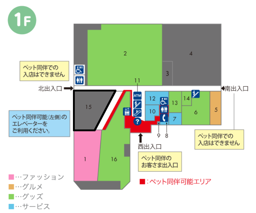 フロアマップで見ると黒太線で囲った「15」のスペース。大型店が向かい合って賑わいのあるエリアだっただけに、閉店は残念ですね。