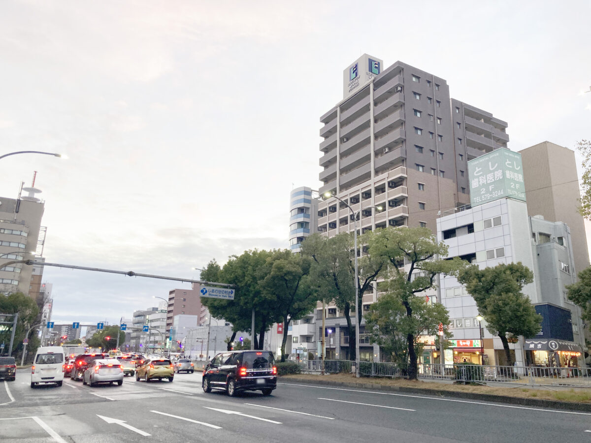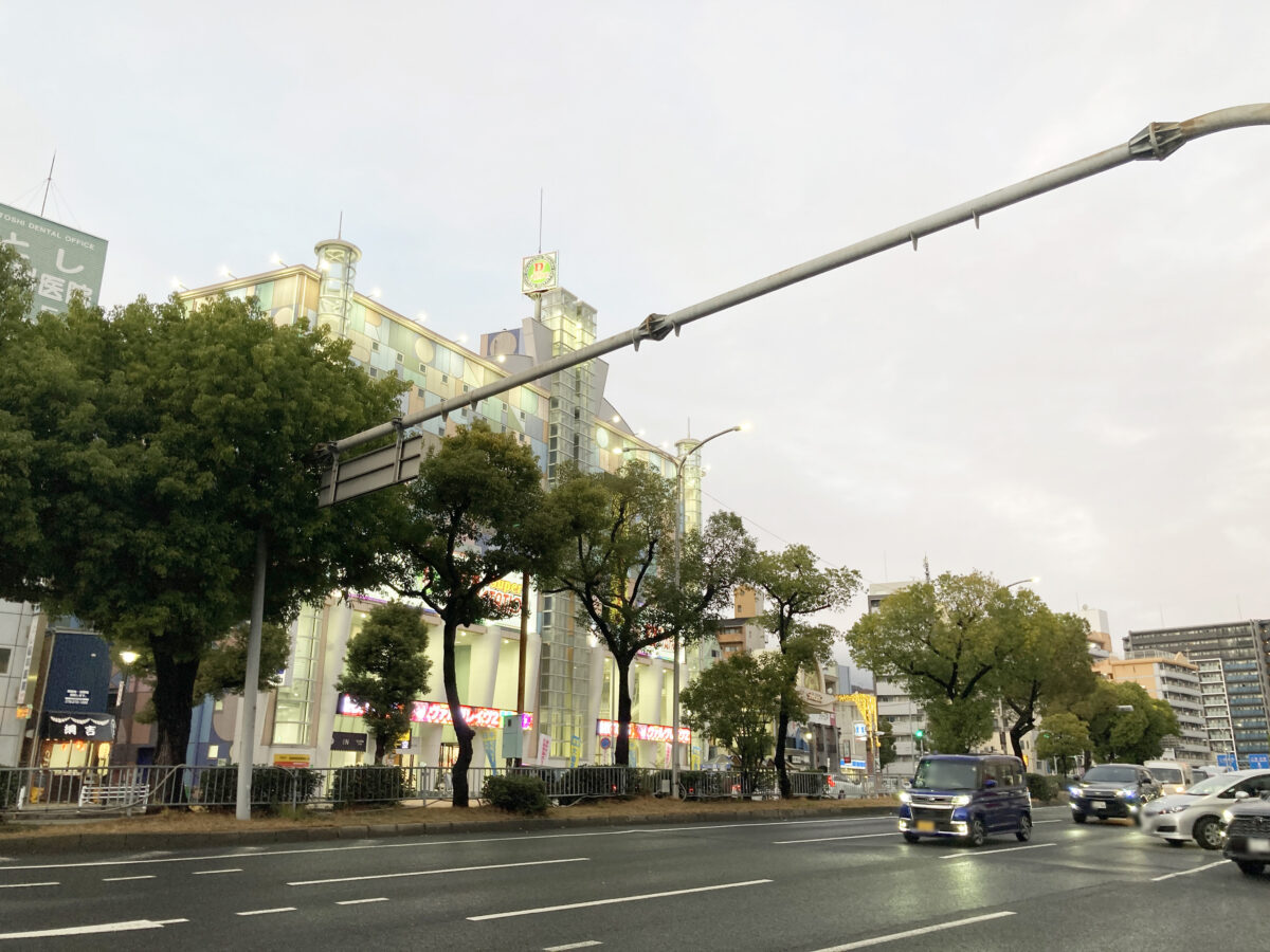 西隣は丼チェーン「なか卯」で、新開地駅の3番出口がすぐ。少し先が「新開地交差点」で、UFJ銀行が入っていたビルの取り壊しなどが行われているところです。