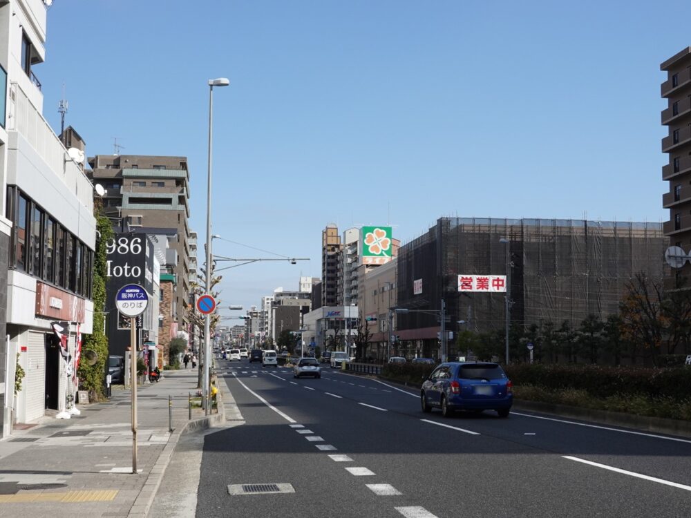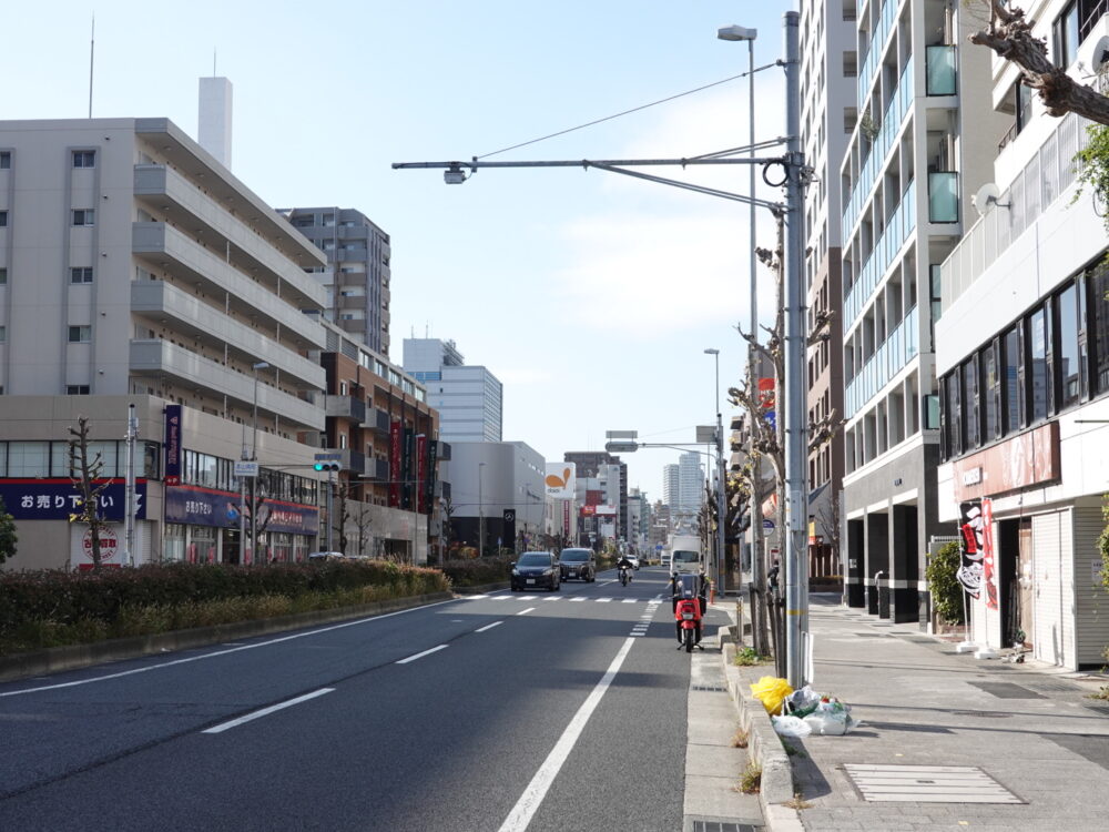 西側を向くとこんな感じ。「セカンドストリート 神戸東灘店」や「エネオス」があるあたりです。