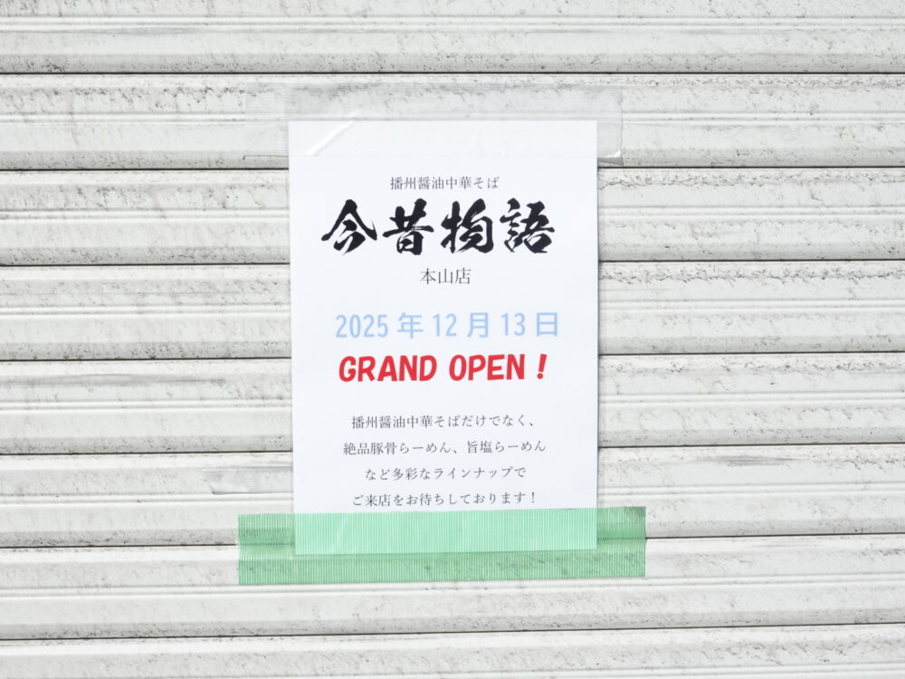 JR摂津本山駅から歩いて13分ほどのところに、ラーメン屋さん『今昔物語』ができてます。
