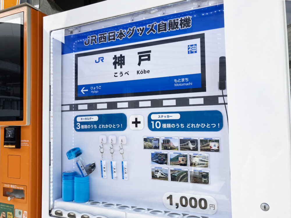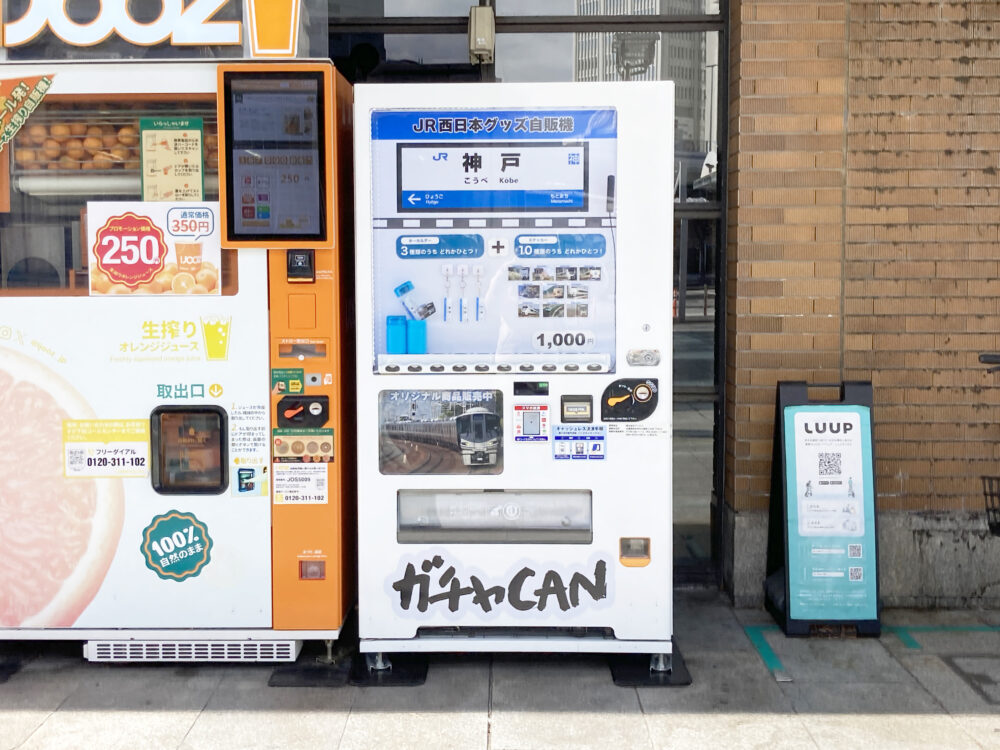 JR神戸駅の海側に、「JR」のグッズが買える自販機ができてます。