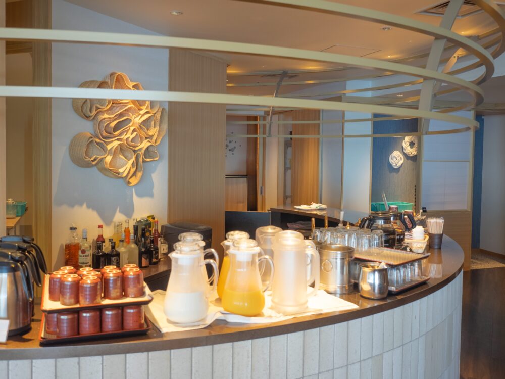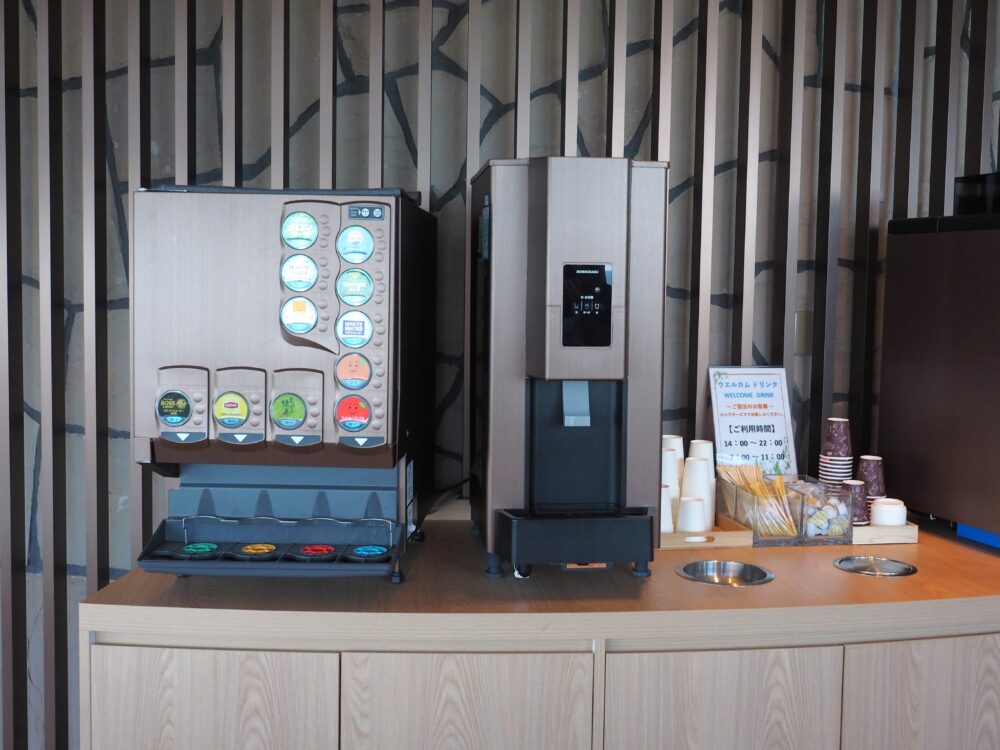 セルフサービスで自由に楽しめる「ウェルカムドリンク」も。14:00~22:00・7:00~11:00の間は滞在中も含め、珈琲・紅茶・ジュースなど好きなものを好きなだけ楽しむことができます。