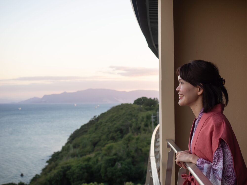 夕日に染まる空を眺めながら、波の音を聞いて、これぞ大人の非日常旅。時間の経過とともに変わる海と空の色を、ゆったりとした気持ちで満喫します。