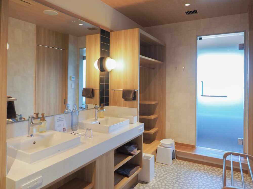 ちなみに4階の「最上階スーペリアツイン(ウッドデッキ・シャワーブース付)」はこんな感じ。2022年以降にリニューアルされたお部屋なので十分きれいですが、この夏リニューアルしたお部屋とは少しテイストが異なります。