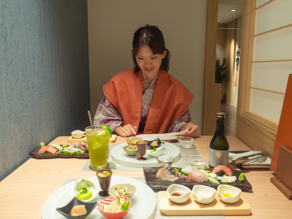 せっかくならと亀の井ホテルオリジナル日本酒「純米吟醸 by 澤乃井 300ml(1,900円)」をいただくことに。そのほか、ノンアルコールのオリジナルカクテルも充実しています。