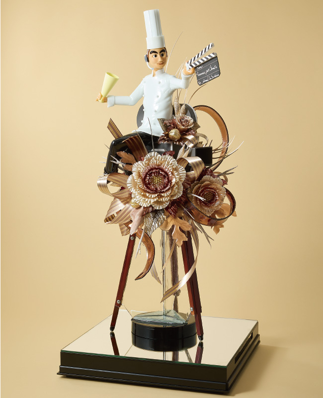 そんな日本初公開130年を記念して、「Welcome to Entertainment ~映画の世界~」をテーマに、〈ケーキハウス ツマガリ〉の工芸マイスター 岩佐 康雄氏が製作した工芸菓子「ハイっ!スタート!!」が展示されます。