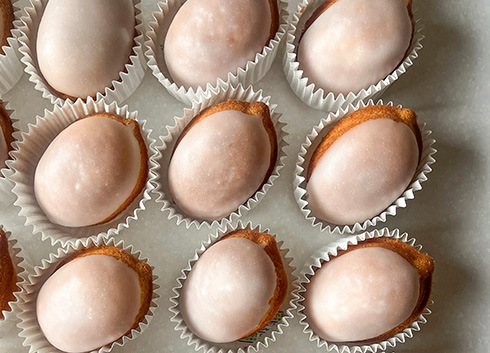 広島の檸檬農園「中吉屋」の国産檸檬を使い、檸檬皮、檸檬果汁をたっぷりと加えて焼いています。表面の糖衣には檸檬果汁とジンを合わせて、檸檬の爽やかさをより引き立てるように仕上げられているみたい。