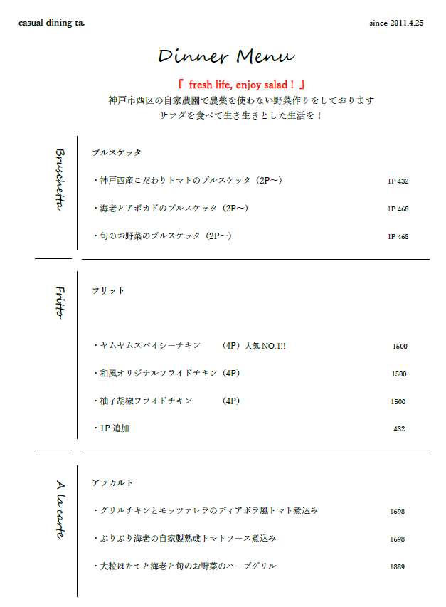 | 店舗名 | casual dining ta. |
