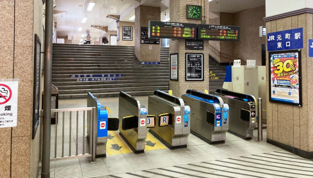 1934年(昭和9年)に開業した「JR元町駅」、観光客なども多く利用する東口は、ホームとの行き来が階段のみとなっています。