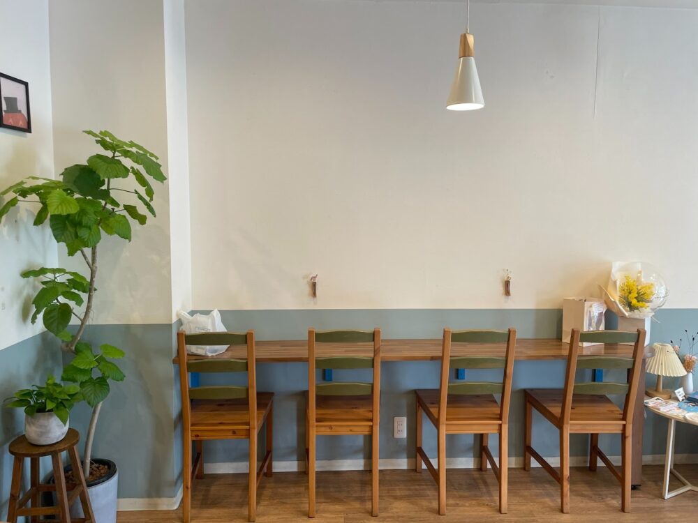 4人掛けテーブルが2卓、2人掛けテーブルが1卓設けられており、平日はママ友同士の女子会でにぎわい、週末には家族連れで訪れるお客様も多いみたい。