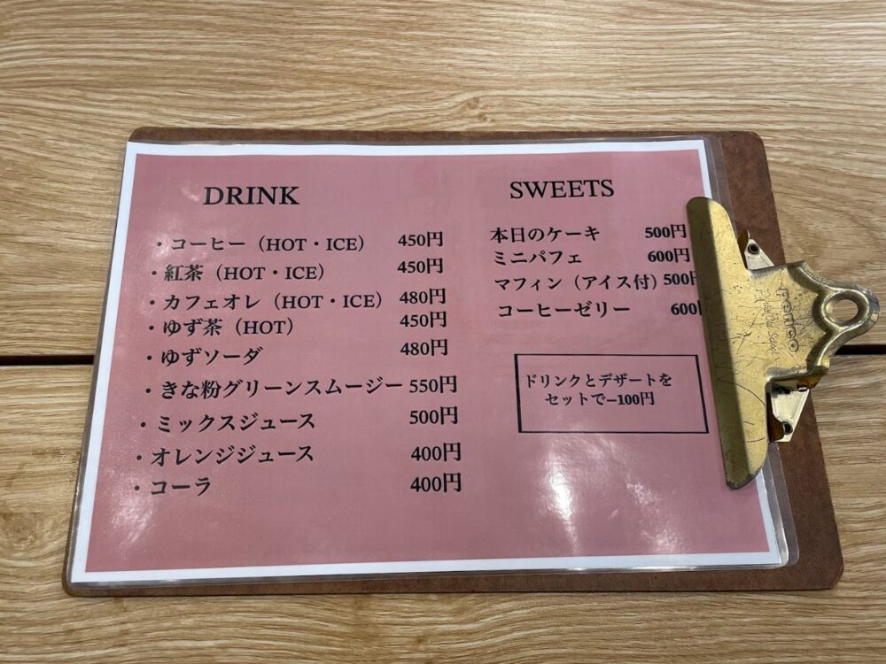 ランチメニューだけではなく、ドリンクやスイーツをそれぞれ単品(各500円前後)で注文することも。ランチのセットにはないドリンクメニューもありますよ。