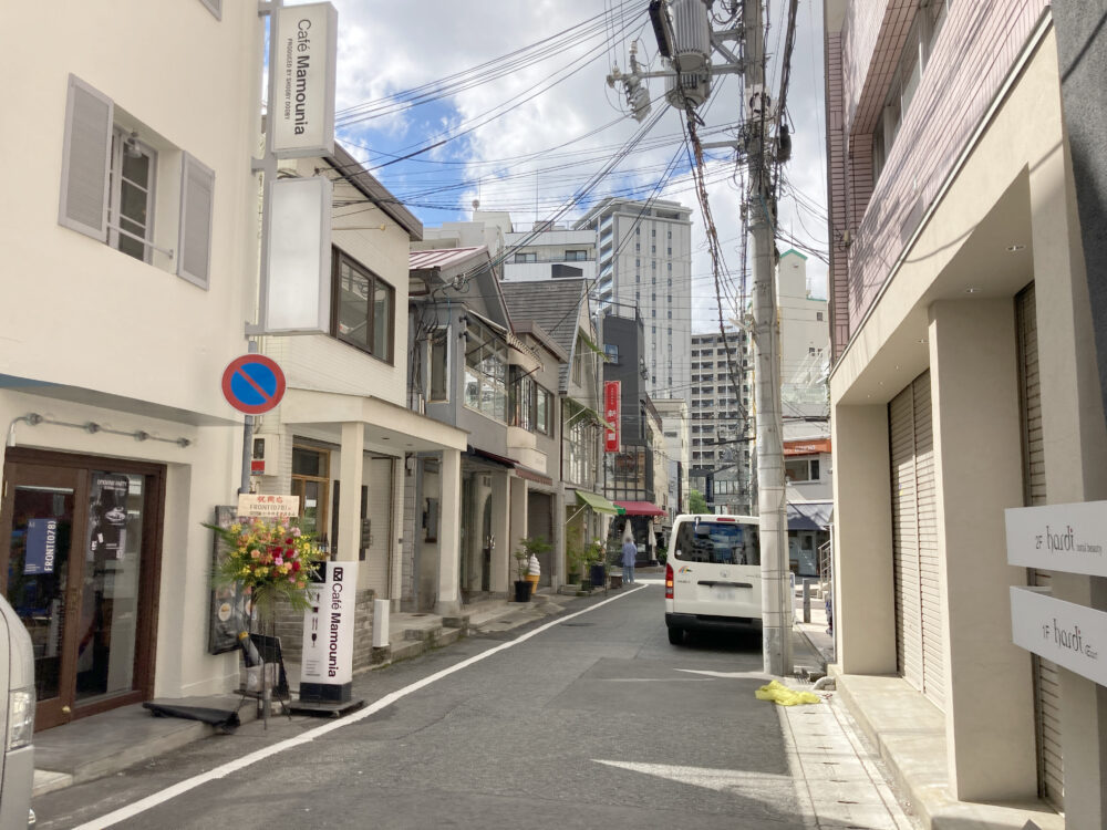 東を向くと次の交差点には「HANAZONO CAFE」や「CREPE & GALETTE TOOTH TOOTH」があります。