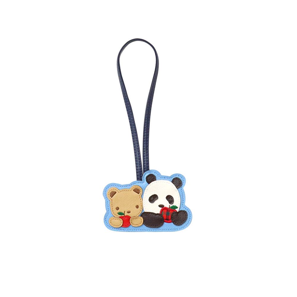 パンダとクマちゃんが仲良く大好きなリンゴを食べているかわいらしいアート。マットな質感で落ちつきのある上品な仕上がりです。チャームとしても、ポシェットとセットでもおすすめのアイテムです。