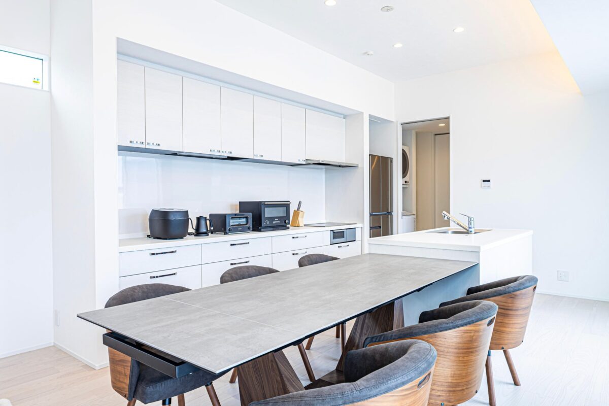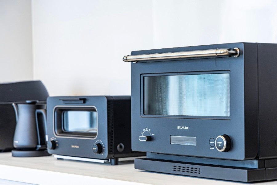 キッチンにはBALMUDA製のトースター・オーブンレンジ・ケトルに加え、炊飯器やホットプレート、各種キッチンツールが完備されています。