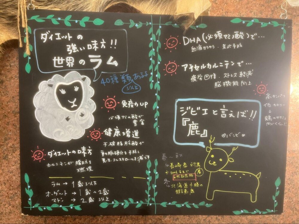 店内のいたるところに、ジビエに関する豆知識や人気メニューの紹介も。せっかく来てくれたので、ぜひジビエに興味を持ってもらえるよう魅力を発信したいと料理人の伊藤さんは話します。