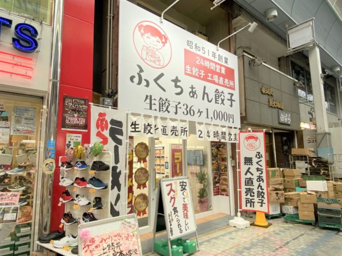 水道筋商店街に「生餃子」の24時間無人直売所『ふくちぁん餃子』ができてました。もともとは、唐揚げ店「あっちゃんのからあげ屋」があったところ。