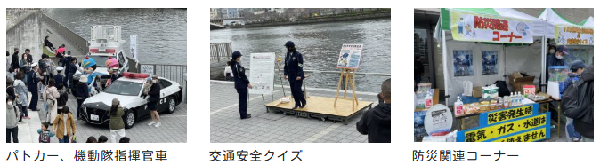 大阪府東警察署による春の交通安全キャンペーンとして、白バイ、青バイ、パトカー、機動隊指揮官車の展示を行うとともに、災害防止などの啓発活動を行います。