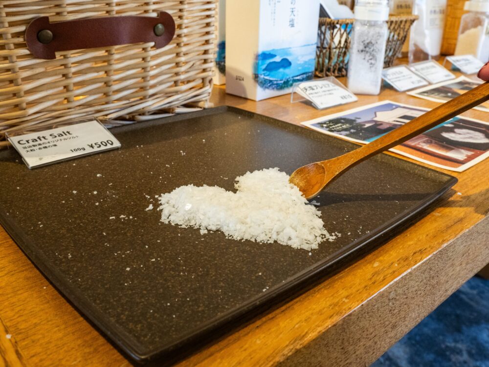 お店で提供している料理には、赤穂の塩をメインとして、全国各地の塩から料理にぴったり合うものを選んで使っているんだとか。