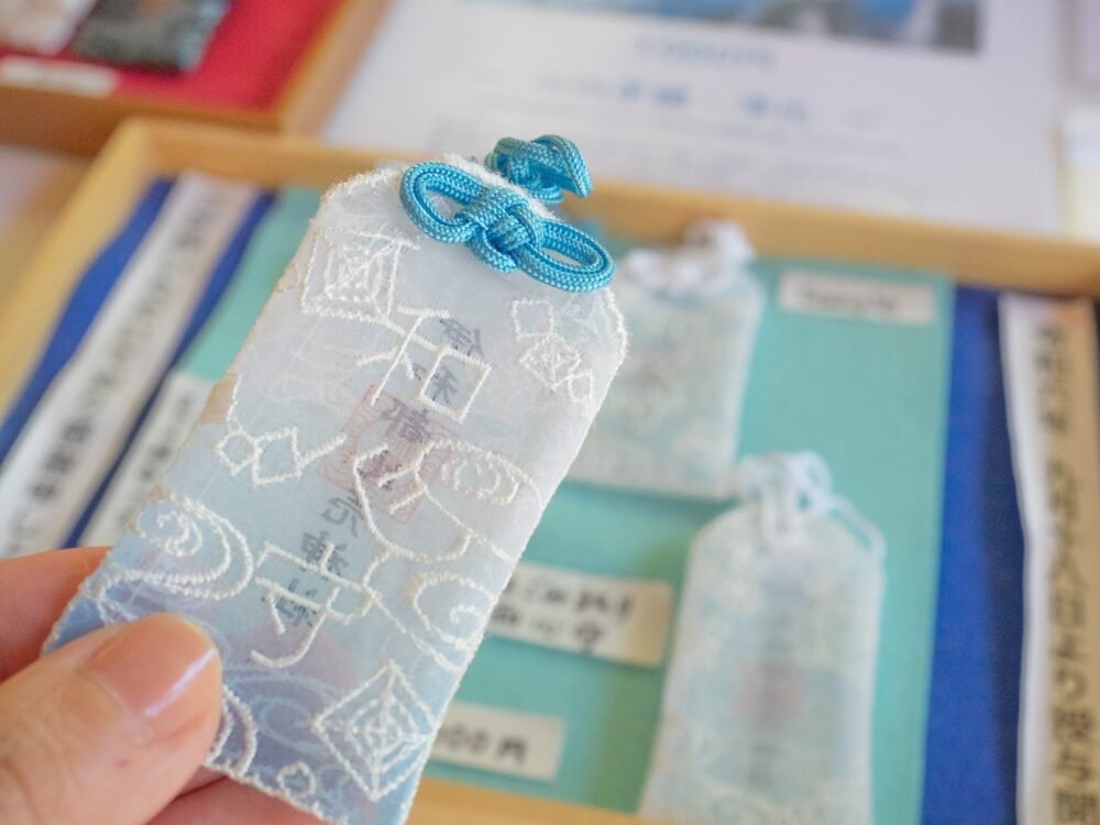 レース生地と刺繍が可愛らしいこちらのお守りは「和心守(なごみまもり)」という名で、心の平穏・浄化にご利益があるそう。