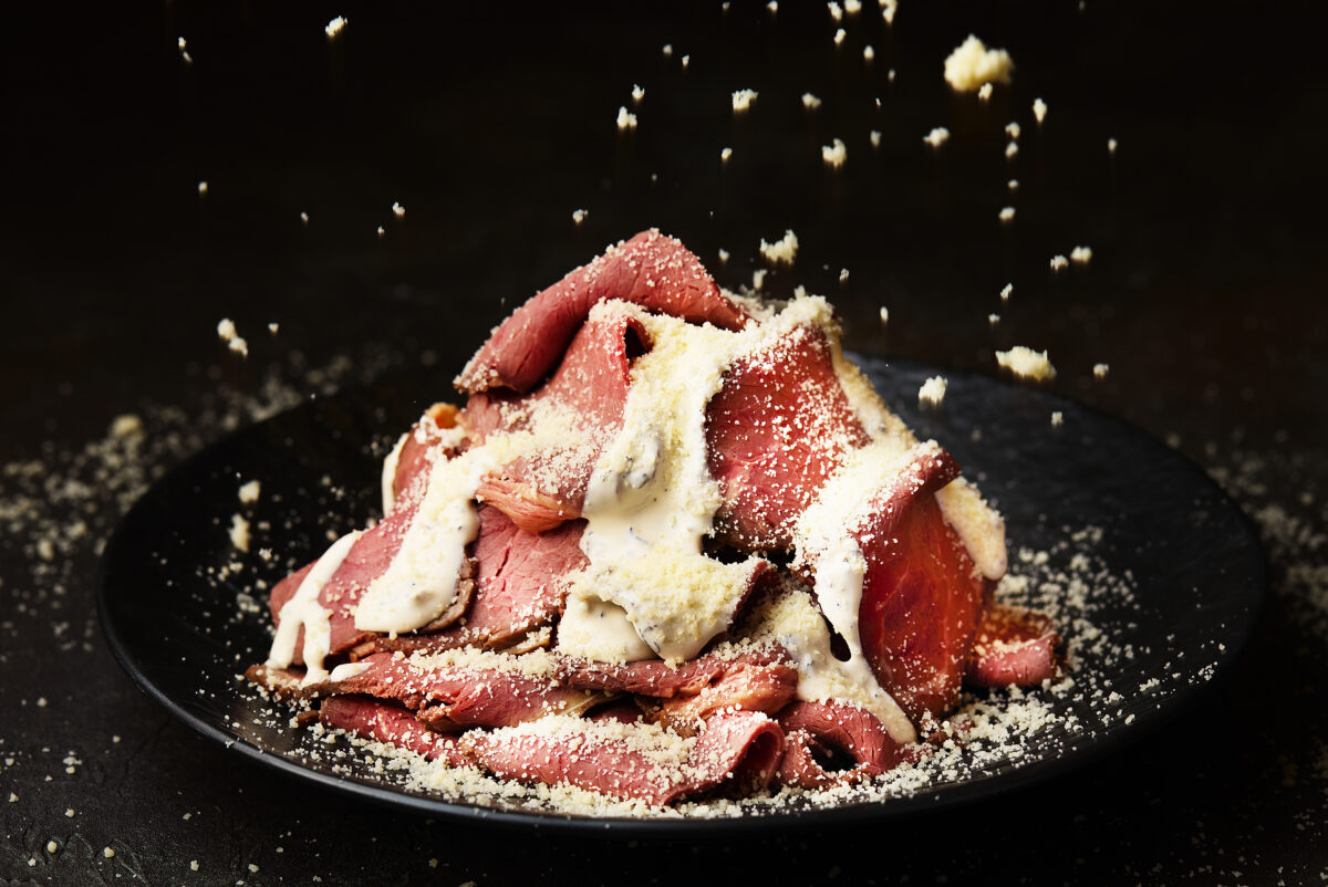 降り積もるチーズと禁断トリュフマヨのローストビーフスライス