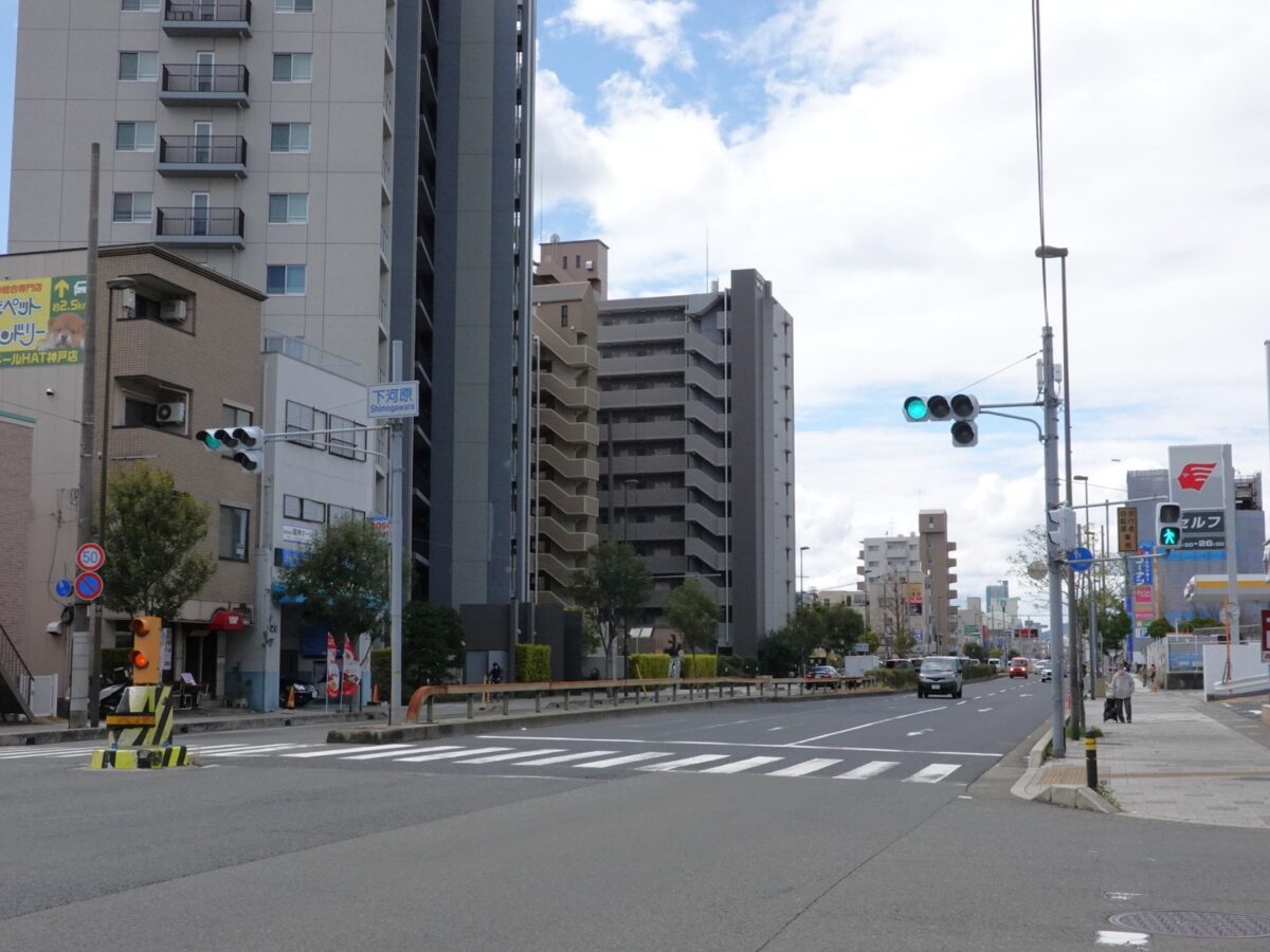 近くには和菓子屋さんの「ナダシンの餅 本店」や「中華そば 急がば啜れ」というラーメン店があります。「兵庫トヨタ 灘店」や、手打ちうどんが楽しめるお店「小麦の実り 灘本店」もあるあたり。