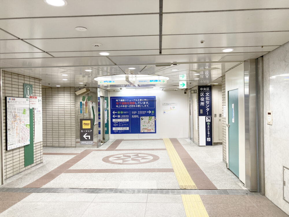 「さんちか」などからつながる地下通路の海側が、リニューアル工事のため閉鎖されてます。
