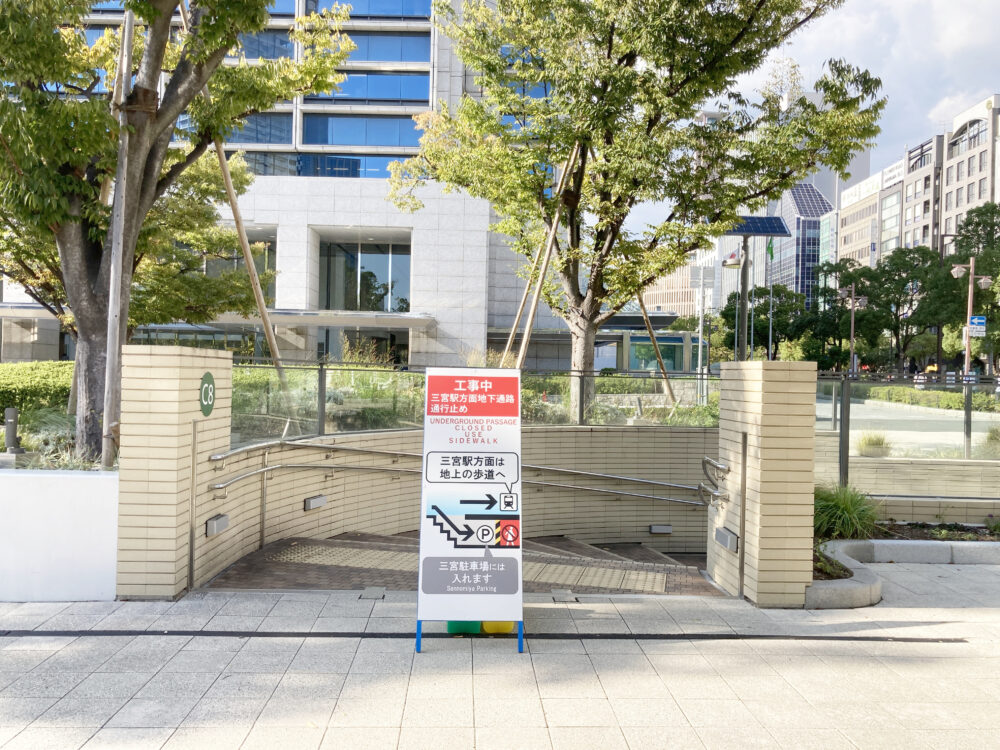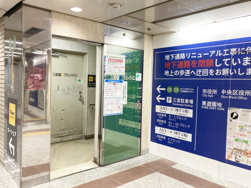 通路が閉鎖されただけなので、すぐ横の三宮駐車場の入口は引き続き利用できる状態です。
