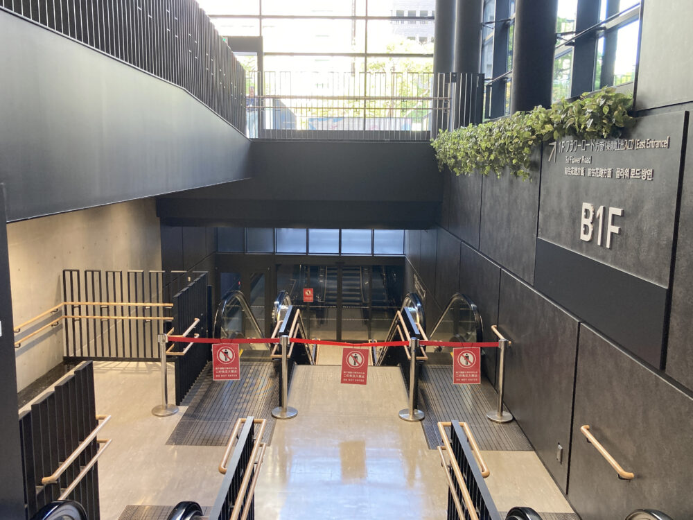 2024年9月にできたばかりの「連絡棟」の地下入口(B2階)も封鎖されてます。