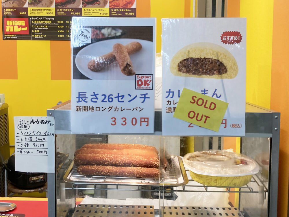 テイクアウトコーナーもあって、長さが26センチもある「新開地ロングカレーパン」や「カレーまん」がラインナップ。