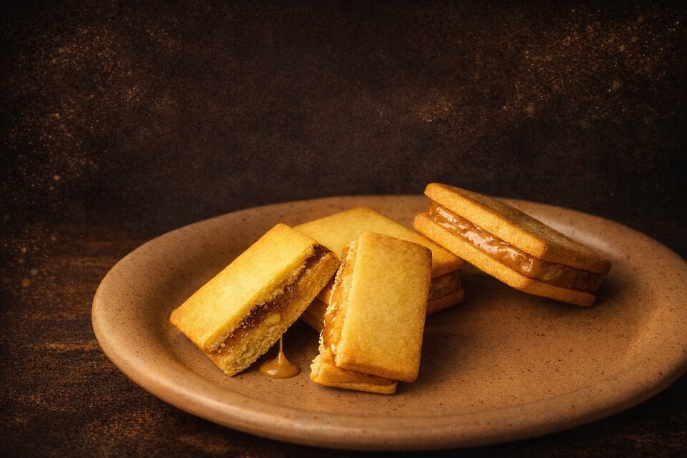 生キャラメルのようなくちどけなめらかなキャラメルを香ばしいカカオクッキーでサンドしました。キャラメルには食感のアクセントとしてくるみを入れており、カカオクッキーとキャラメルの間にはDOMORI社の高級チョコレートを入れているので華やかなチョコレートの風味も感じられます。