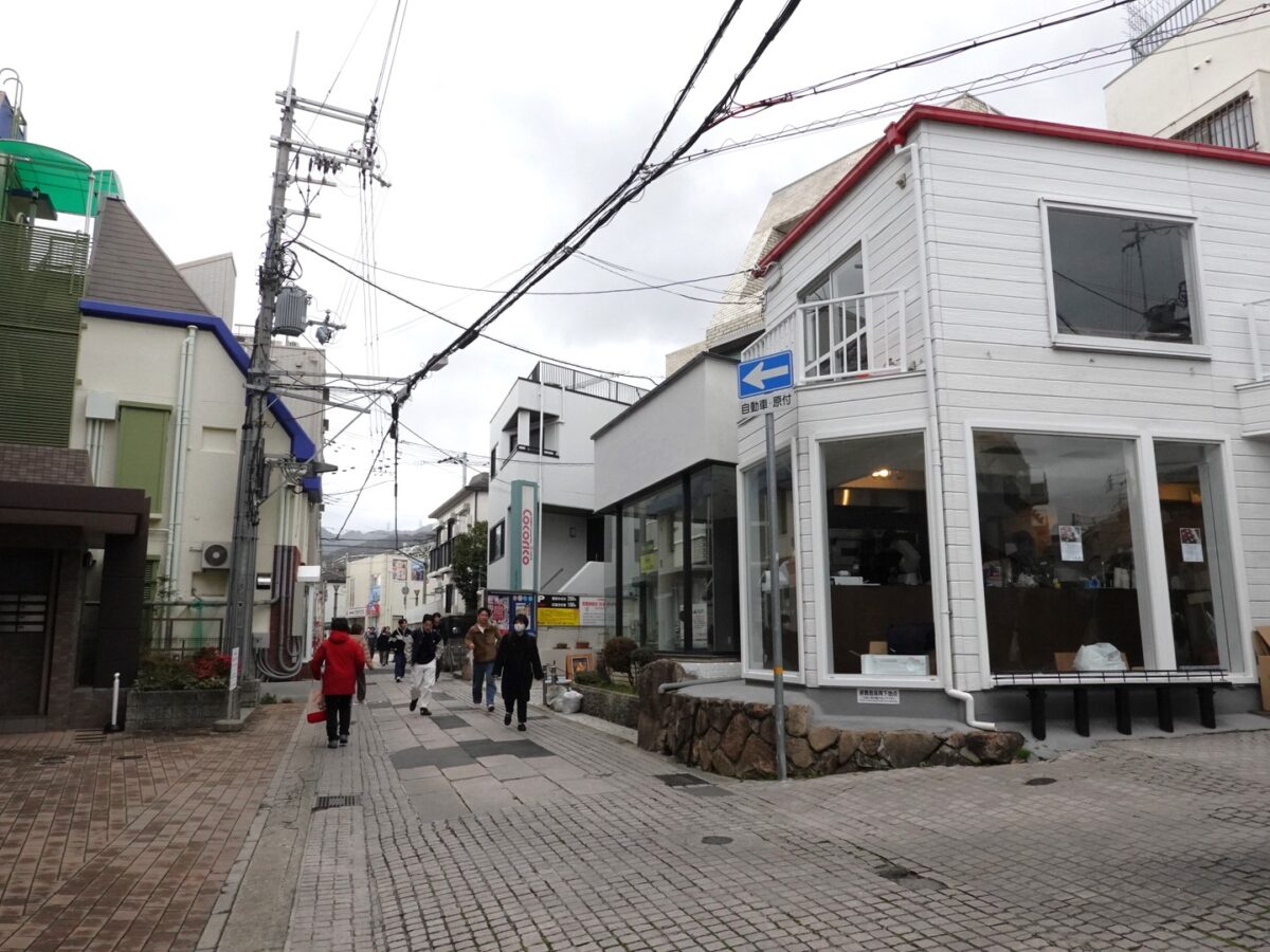 反対側を向くと、こんな感じ。少し進むと「ワインショップ ヤマムラ」っていう酒屋さんがあります。