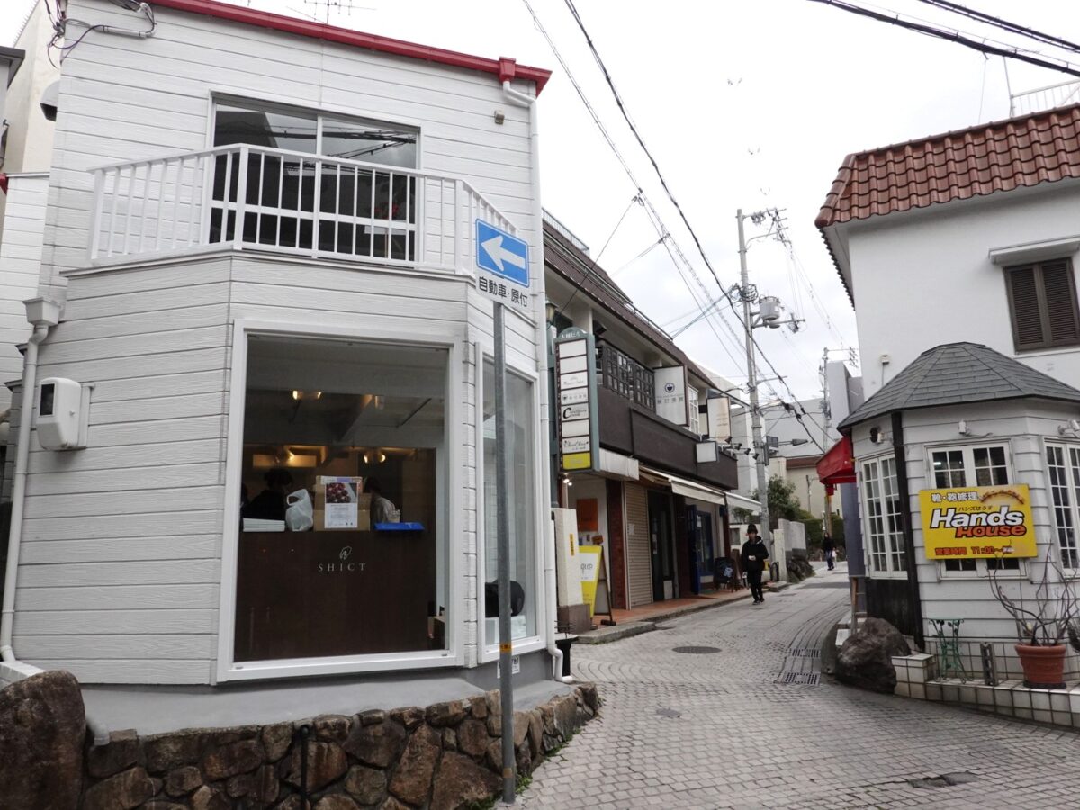 隣の建物には「Tea and Antiques 辰巳茶房」っていうカフェがあるあたり。先に進むと、食べログ百名店にも何度か選出されている老舗のパン屋さん「フロイン堂」があります。