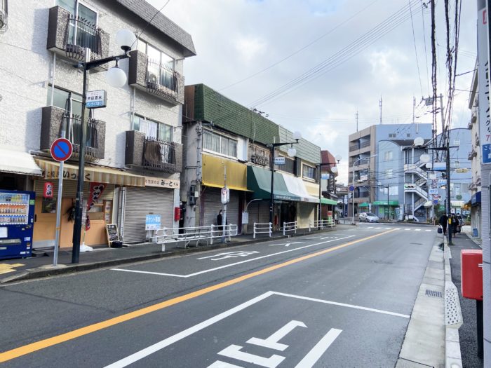 反対を向くとこんな感じ。少し進んだ交差点の近くには、老舗喫茶店「スイス」があり、さらに進むと2021年にオープンした「はくと」という和風スパイスカレーのお店があります。