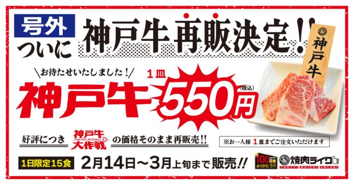 2021年12月にSNSで「神戸牛の提供価格」を決定するキャンペーンを実施しており、今回はそのとき決まった『1皿50g 550円(税込)』での再販となるんだとか。