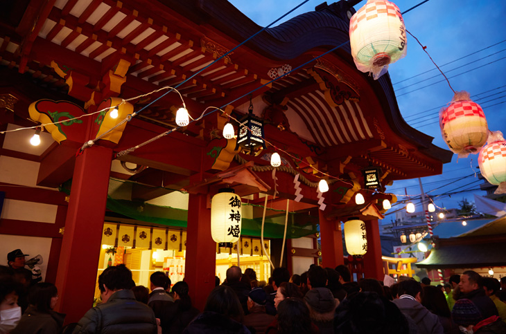 9日が宵えびす、10日が本えびす、11日が残り福と呼ばれ、福を授かりに訪れる人で終日賑わいます。