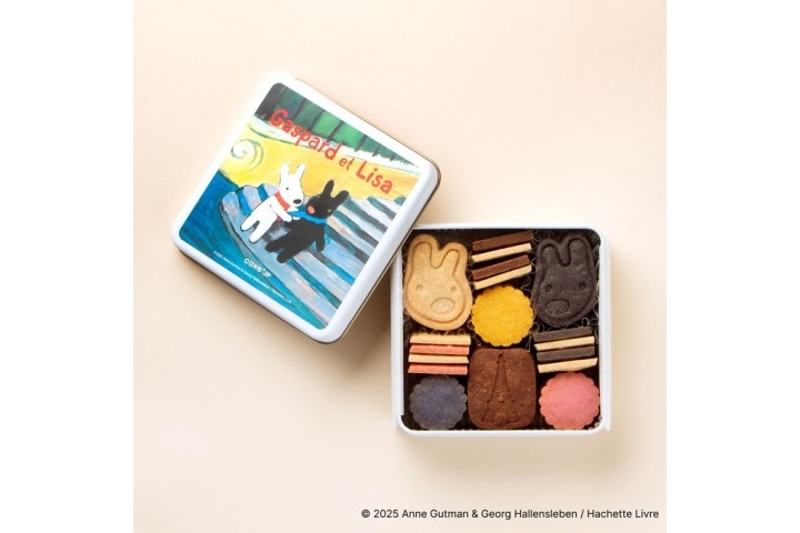 リサとガスパールの仲良しな様子を描いたオリジナルクッキーがぎゅっと詰まっています。缶のデザインのみならず、クッキーでもリサとガスパールの世界観を楽しめる商品。