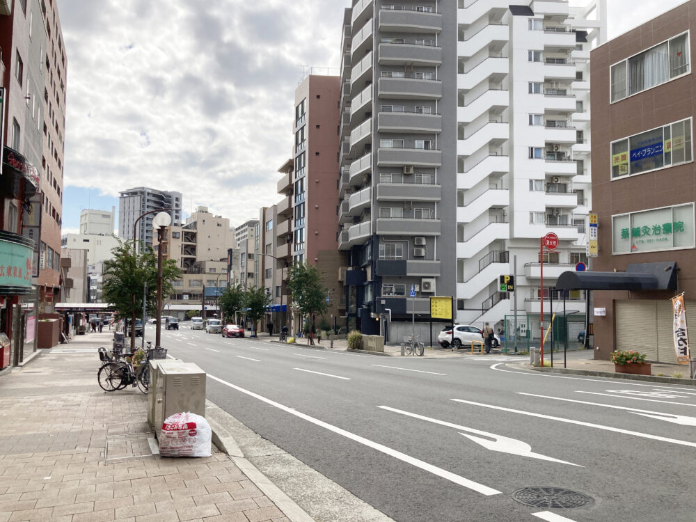 南を向くと、少し先が「生田新道」との交差点で、最近日本料理店「一魁」ができたあたりです。