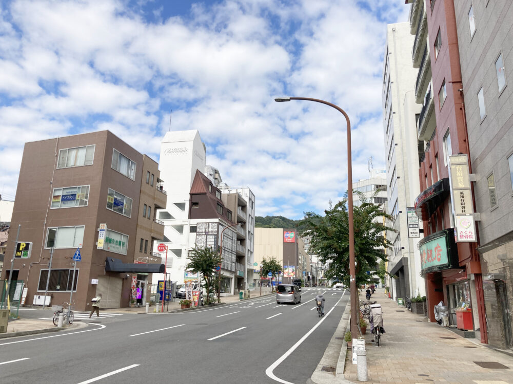 交差点で西へ曲がると、地下鉄 県庁前駅へも歩いて5分ほどの距離。