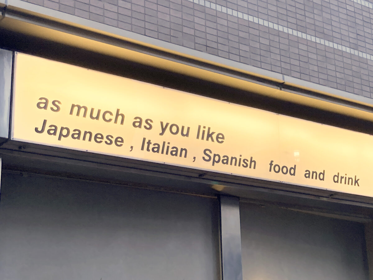 オープンしたばかりで、どんな料理が食べられるのか具体的には分かりませんが、和食・イタリアン・スペイン料理と書かれているので、多国籍なメニューがラインナップされているものと思われます。